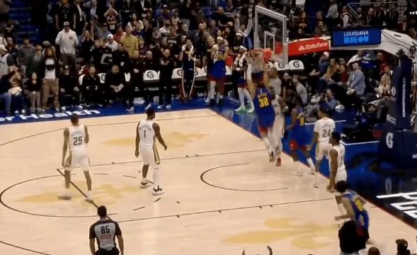 虎扑01月14日讯 NBA常规赛,掘金客场对阵鹈鹕的比赛正在进行中。比赛的第四节,最后时刻戈登空切篮下双手暴扣,掘金领先4分几乎杀死比赛。来源:虎扑 虎扑01月14日讯 NBA常规赛,掘金客场对阵鹈鹕的比赛正在进行中。比赛的第四节,最后时刻戈登空切篮下双手暴扣,掘金领先4分几乎杀死比赛。来源:虎扑...